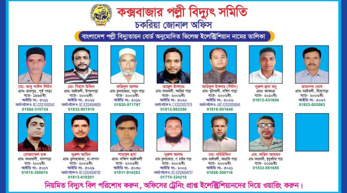 কক্সবাজার পল্লী বিদ্যুৎ সমিতির চকরিয়া জোনাল অফিসের আওতাধীন এলাকায় বাংলাদেশ পল্লী বিদ্যুতায়ন বোর্ড (আরইবি) অনুমোদিত ভিলেজ টেকনিশিয়ানদের একটি পূর্ণাঙ্গ তালিকা প্রকাশ করা হয়েছে। সংশ্লিষ্ট সূত্র জানায়, তালিকাভুক্ত এই টেকনিশিয়ানরাই চকরিয়া read more