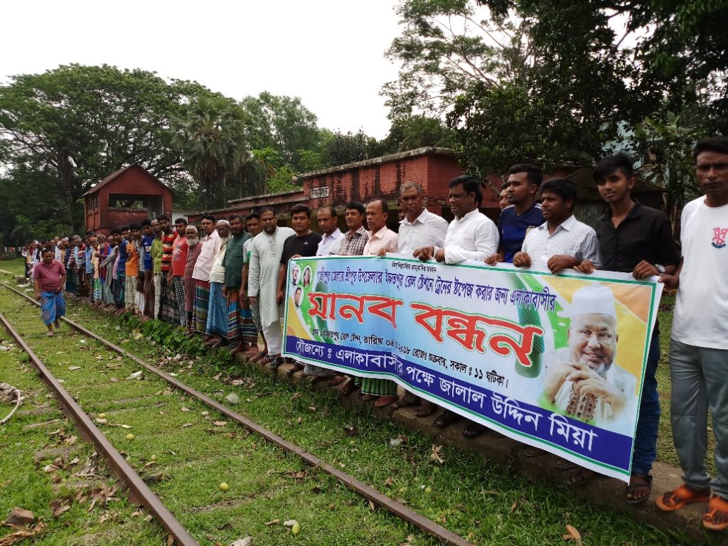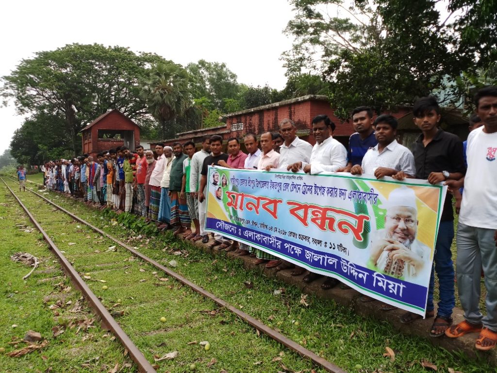 শ্রীপুরের ইজ্জতপুরে বন্ধ স্টেশন চালু ও ট্রেনের যাত্রাবিরতির দাবীতে মানবন্ধন