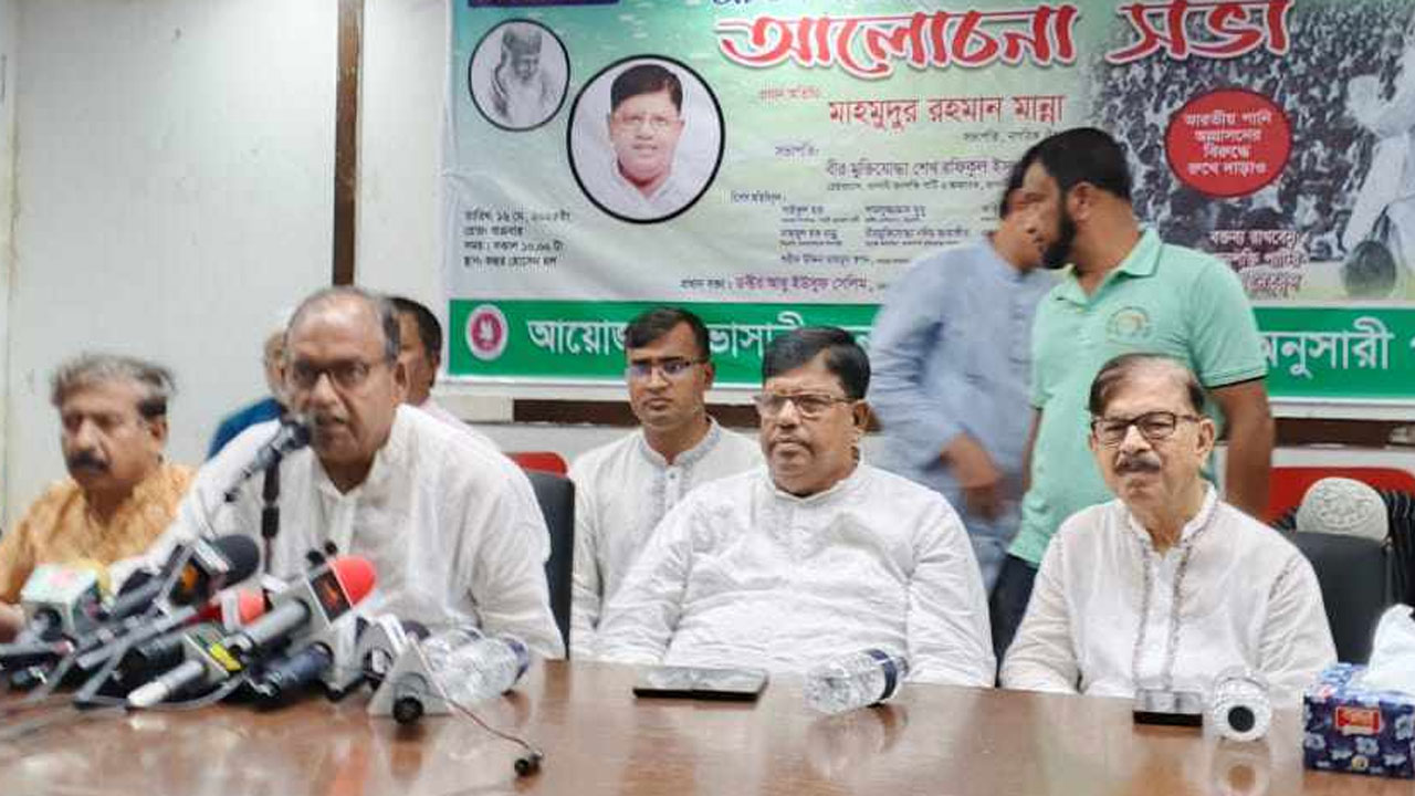 আজ শুক্রবার জাতীয় প্রেসক্লাবের জহুর হোসেন হলে ভাসানী জনশক্তি পার্টি ও ভাসানী অনুসারী পরিষদের উদ্যোগে ৪৯তম ফারাক্কা লংমার্চ দিবস উপলক্ষে এক আলোচনা সভায় তিনি এ মন্তব্য করেন।