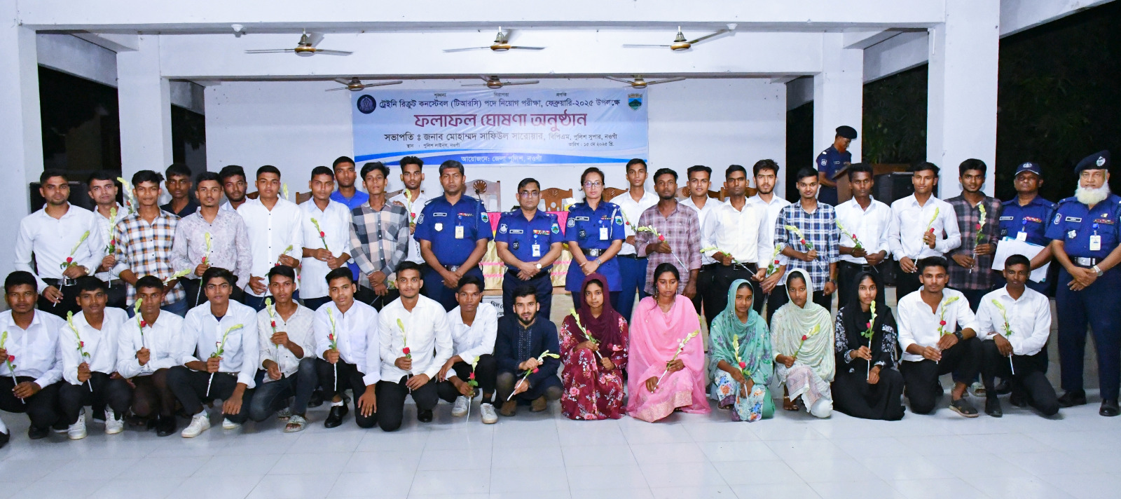 "সেবার ব্রতে চাকরি" এই প্রতিপাদ্যে মেধা ও স্বচ্ছতার ভিত্তিতে বাংলাদেশ পুলিশে ট্রেইনি রিক্রুট কনস্টেবল (টিআরসি) পদে মেধায় নিয়োগ পেয়েছেন নওগাঁর ৩৬ জন চাকুরীপ্রার্থী। মাত্র ১২০ টাকার সরকারি ফি জমা দিয়ে নিজের মেধায় স্বপ্নের চাকরি পেলেন তারা। বৃহস্পতিবার রাতে নওগাঁ পুলিশ লাইন্সে আনুষ্ঠানিক ভাবে নিয়োগ পরীক্ষার প্রাথমিক ফলাফল ঘোষণা করেন জেলা টিআরসি নিয়োগ বোর্ডের সভাপতি ও জেলা পুলিশ সুপার মোহাম্মদ সাফিউল সারোয়ার।