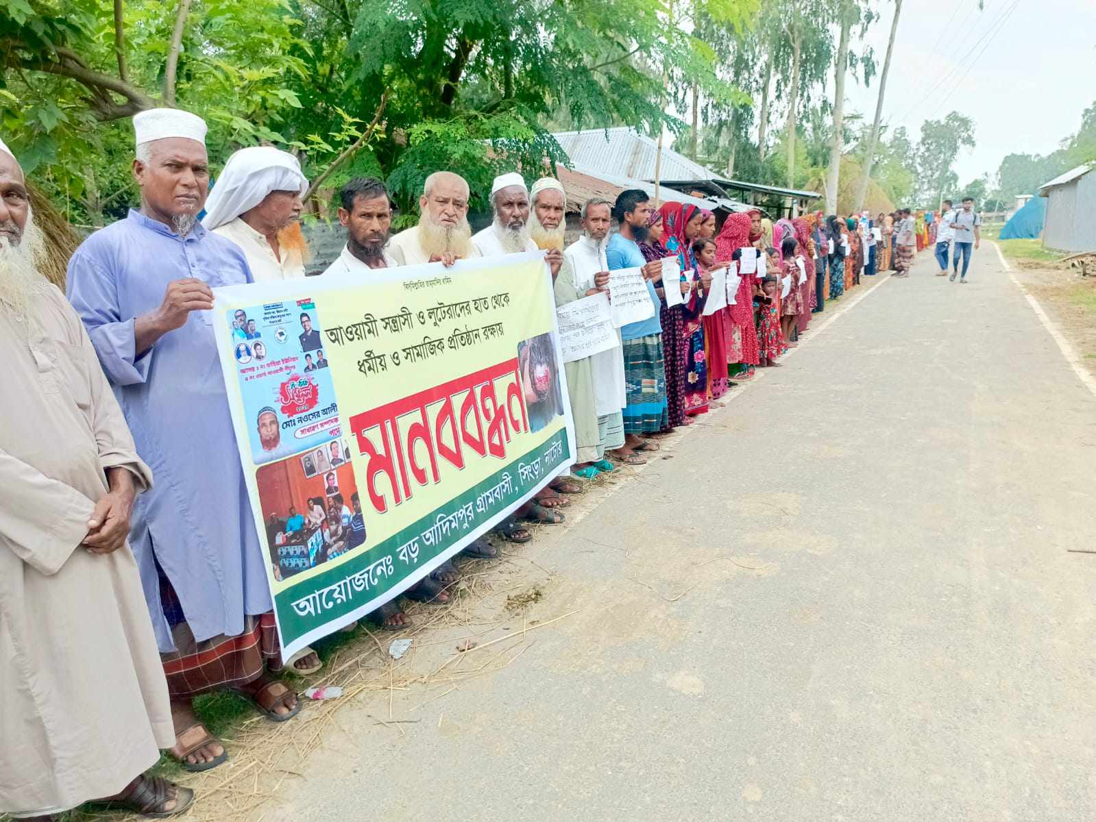 নাটোরের সিংড়ায় ধর্মীয় ও সামাজিক প্রতিষ্ঠান রক্ষায় মানববন্ধন করেছে বড় আদিমপুর গ্রামবাসি।