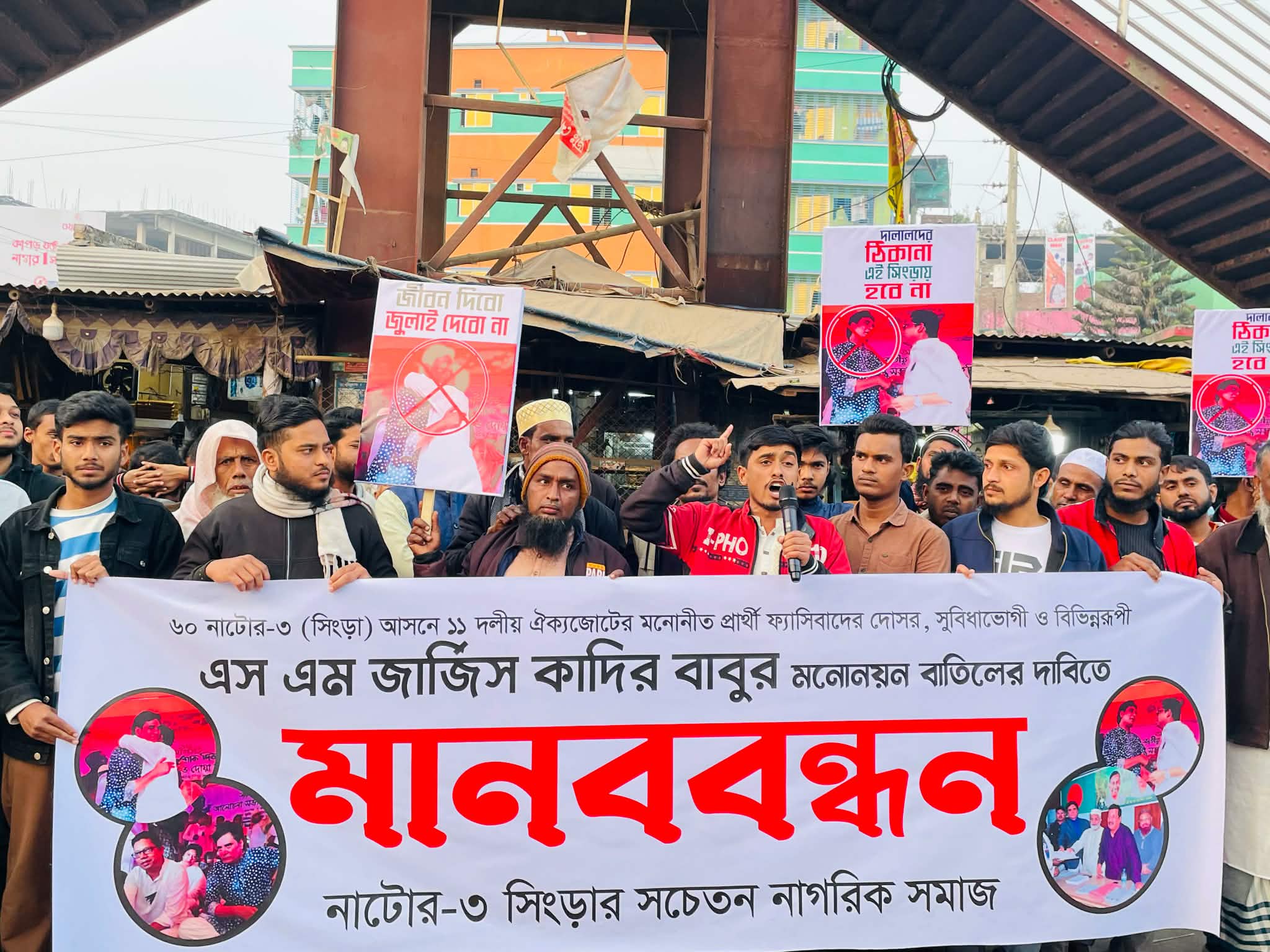 ২৪ ঘন্টার আল্টিমেটাম: নাটোর-৩ আসনে ১০ দলীয় জোট এনসিপির প্রার্থী পরিবর্তনের দাবিতে মানববন্ধন