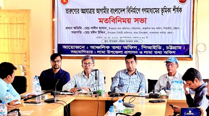 আঞ্চলিক তথ্য অফিস চট্টগ্রাম পিআইডির উদ্যোগে ‘তারুণ্যের অগ্রযাত্রায় আগামীর বাংলাদেশ বিনির্মাণে গণমাধ্যমের ভূমিকা শীর্ষক মতবিনিময় সভা অনুষ্ঠিত হয়েছে। বৃহস্পতিবার (২৯ মে) সকালে বান্দরবান জেলার লামা উপজেলা পরিষদের সম্মেলনকক্ষে অনুষ্ঠিত মতবিনিময়